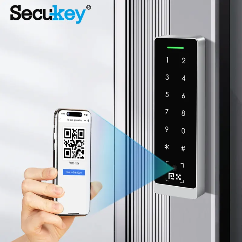 A Secukey QR7 egy modern, nagy tartósságú beléptető olvasó, amely QR-kódot, vonalkódot és többféle RFID kártyát is képes kezelni.